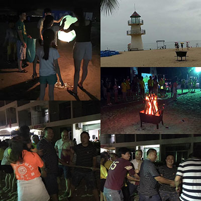 雨后的沙灘空氣格外清新,吃飽喝足,柔軟的沙灘讓腳板真正的解放了,大家在沙灘上圍著篝火舞蹈、放孔明燈許愿、沙灘拔河,玩的是不亦樂(lè)乎。