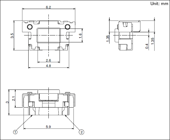 SKSN系列輕觸開關的基板表面安裝高度為1.35mm的中安裝式?廣泛應用于FP-TV HD音響/DVD播放器、個人音響、可穿戴型終端、手機及外圍設備;